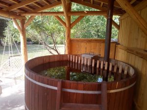 Nyáron az árnyékos csűrben kényelmesen lehet étkezni akár 40 főnek is.