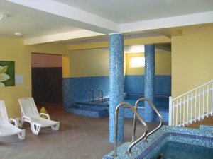 úszómedence, jacuzzi, finn szauna és sókamra szolgálja vendégeink felüdülését. Az udvar hátsó részéből közvetlenül rátérhetünk a