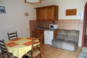 Az apartmanház kétszintes, a szintek összenyithatóak. Az alsó szint akadálymentesített. 4 + 4 fő részére kínálunk szálláslehetőséget.